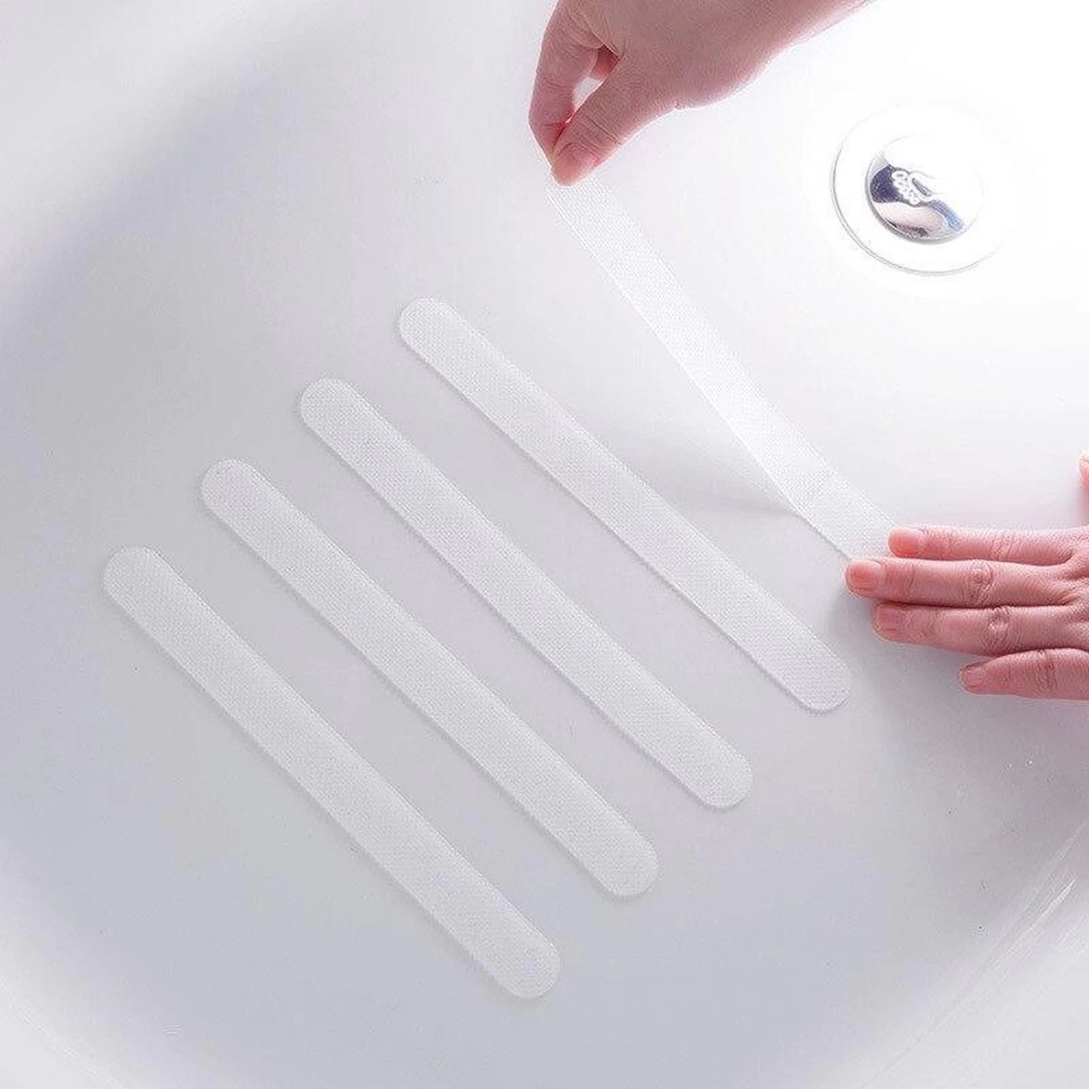 Een ongeluk zit in een klein hoekje. Dat hoekje wordt iets minder klein wanneer het glad is, in bijvoorbeeld een badkuip of met natte voeten in de badkamer. Daarom is het handig om anti-slip stickers op te plakken. Met een dikte van 3mm en een transparante kleur, valt het bijna niet op, maar beschermt het uw veiligheid wel. Door de zachte puntjes op de strips voelt het niet naar aan, maar versterkt het wel uw grip. Ze zijn gemaakt van waterdicht materiaal, uiteraard, en zijn zelfklevend. Ook geschikt voor een trappenhuis of gladde vloeren.