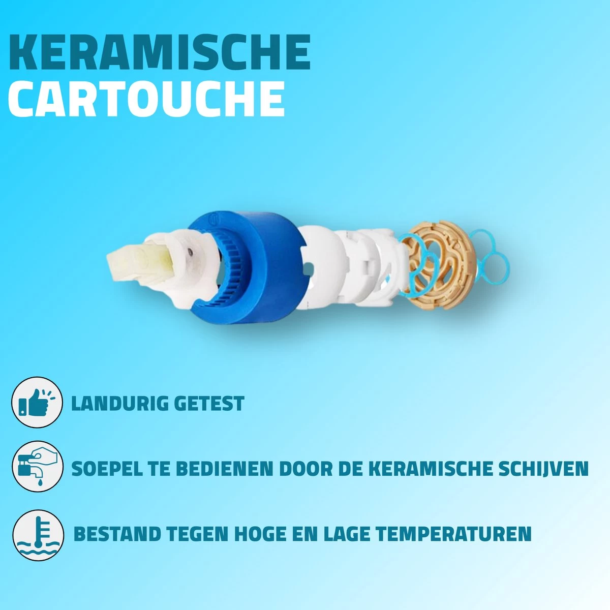 De opbouw wastafelkraan laat zich gemakkelijk plaatsen op een wastafelblad of badkamermeubel welke is voorzien van een kraangat. Plaats de wastafelkraan op een wastafelblad naar wens voor een prachtig geheel. Monteer het product op een wastafelblad met de bijgeleverde montagematerialen. De kraan bedient u met een eenhendel die soepel te bedienen is door de keramische schijven. De schijven zorgen er ook voor dat de kraan goed sluit en zorgt er voor dat u geen last van lekkages krijgt.