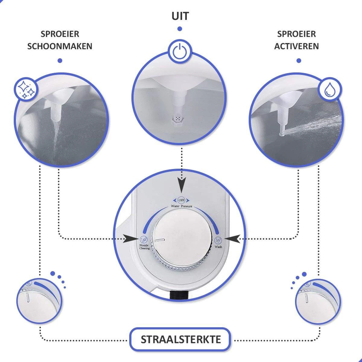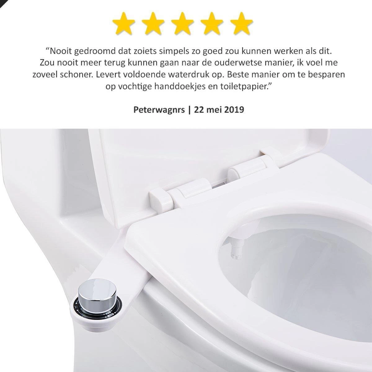 Deze wc bidet voor koud water met een single nozzle wordt direct aan de watertoevoer van uw badkamer gekoppeld en bezorgt jou de ultieme toiletervaring. Door middel van een instelbare waterstraal worden geslachtsdelen op een comfortabele en grondige manier gereinigd. De bidet zorgt niet alleen voor optimale hygiëne, maar is ook een waardige vervanger van wc-papier. Er wordt in Nederland per dag 22.000 kilometer wc-papier door het toilet gespoeld en er zijn gemiddeld 384 bomen nodig om een mens zijn hele leven van toiletpapier te voorzien. Het gebruik van een bidet bespaard dan ook de kosten van wc-papier en verkleind de impact op het milieu.