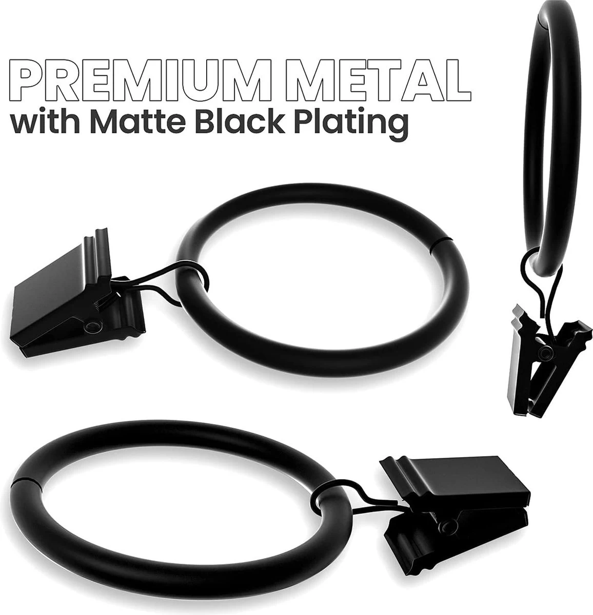 BOTC – Gordijnringen met clips – 1,5 inch set van 20 zware gordijnhaken – voor gordijnen, kappen, afbeeldingen – roestvrije en decoratieve zwarte gordijnringen voor badkamer, woonkamer en kamer.