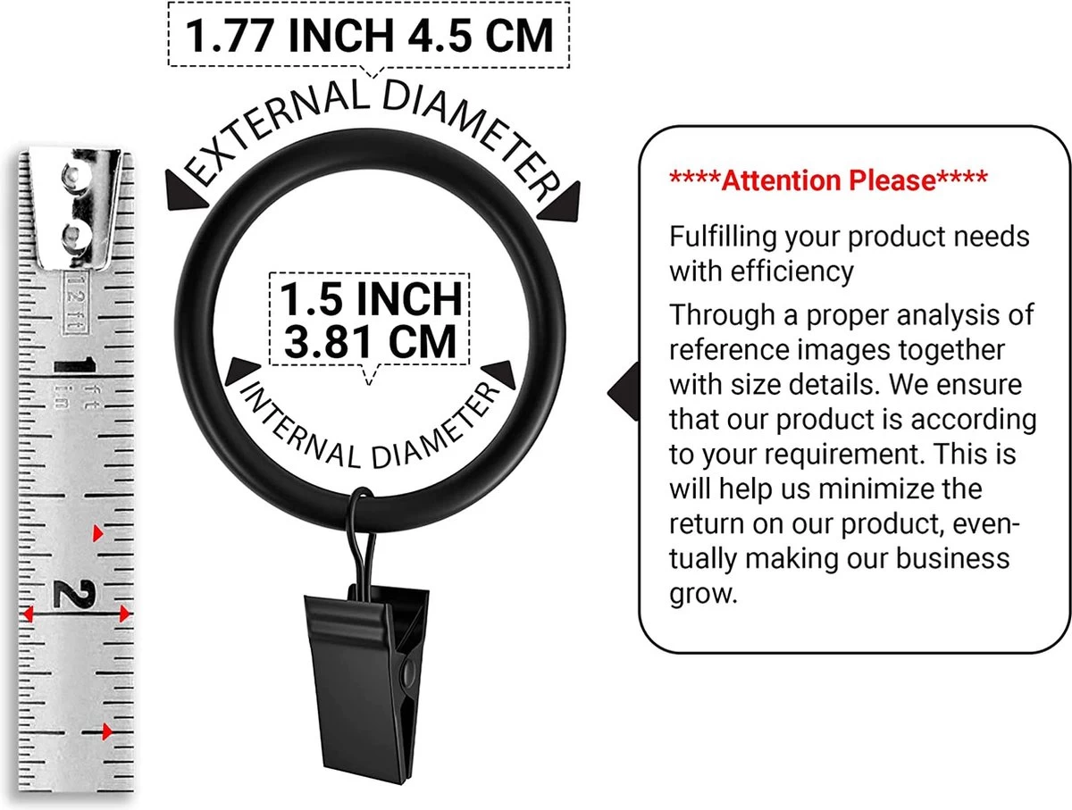 • Binnendiameter gordijnring 1,5 inch/3,81 cm en buitendiameter 1,77 inch/4,5 cm.