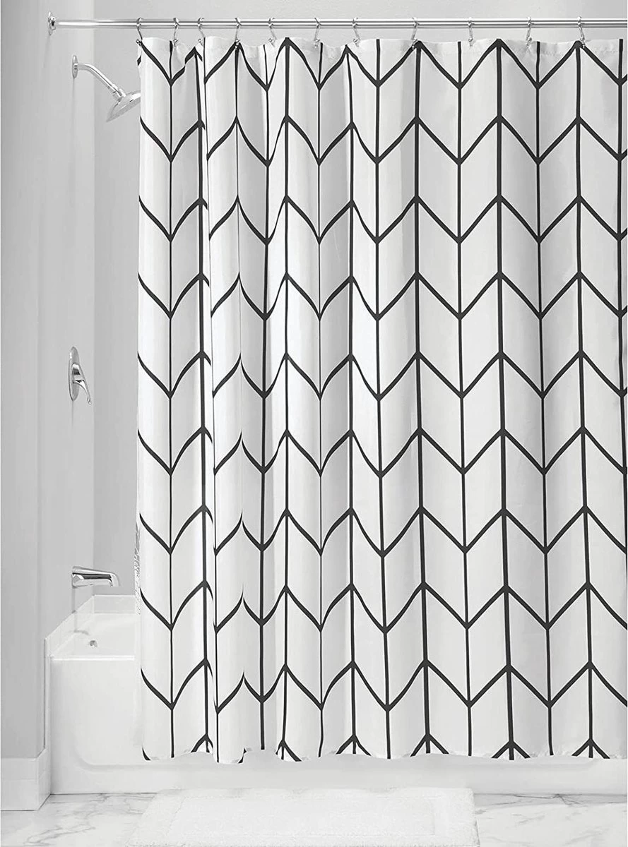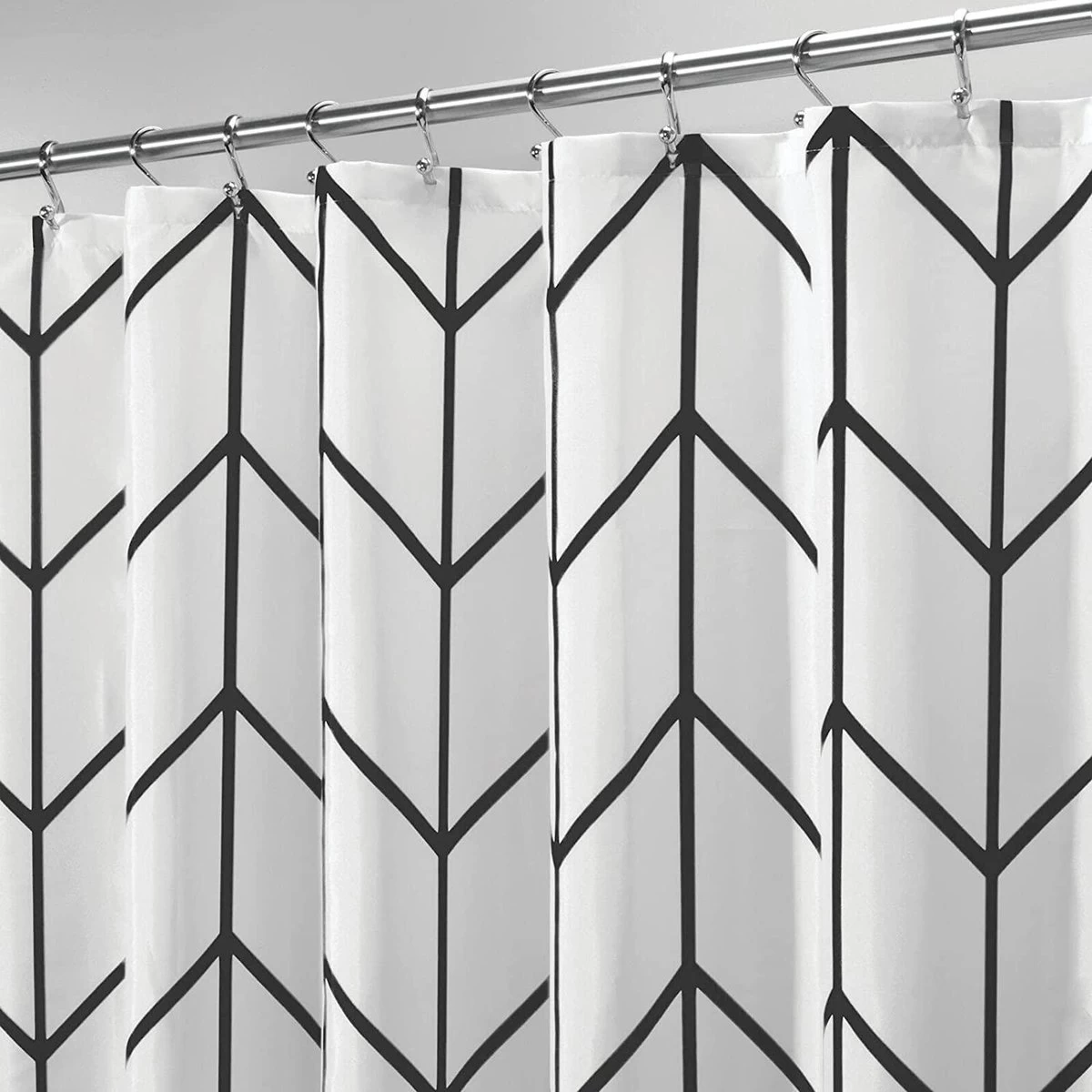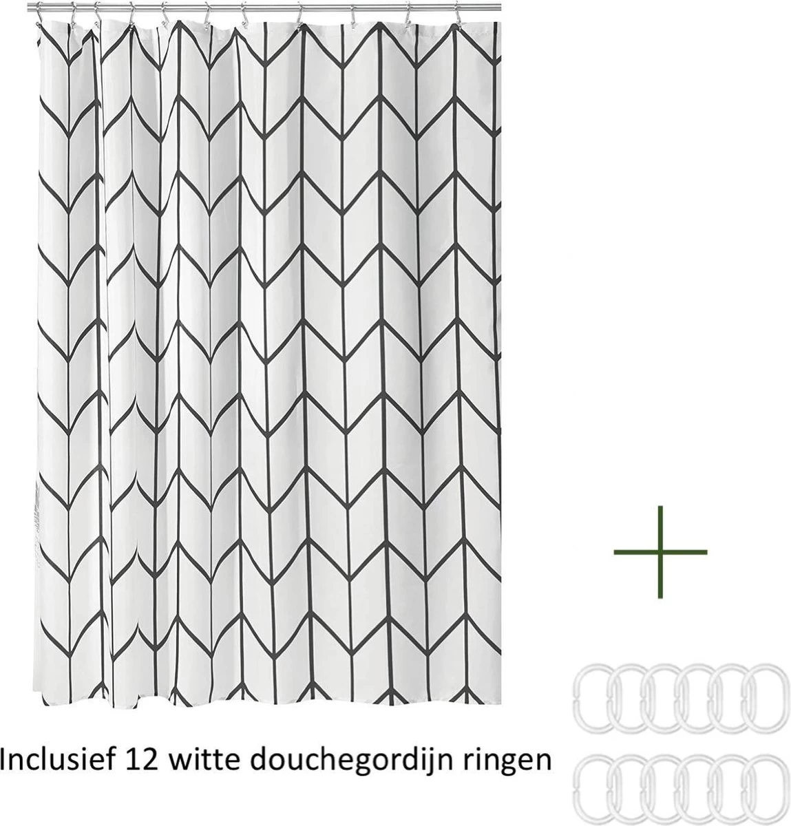 Douchegordijn Badkamer Accessoires – Visgraad – Zwart/Wit- 180×200 Cm