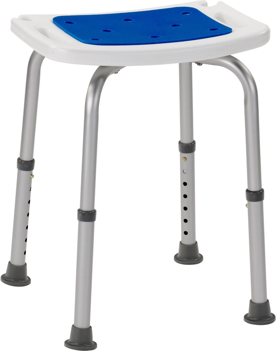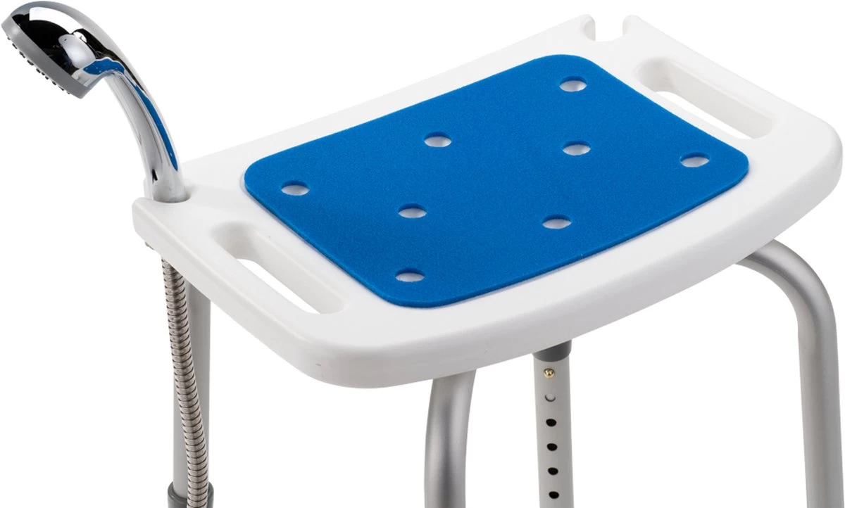 De zitting is voorzien van een comfortabele blauwe antislip bekleding wat ervoor zorgt dat u stabiel zit en niet van de zitting afglijdt. Ook zorgt de antislip bekleding er voor dat de douchekruk comfortabel zit.