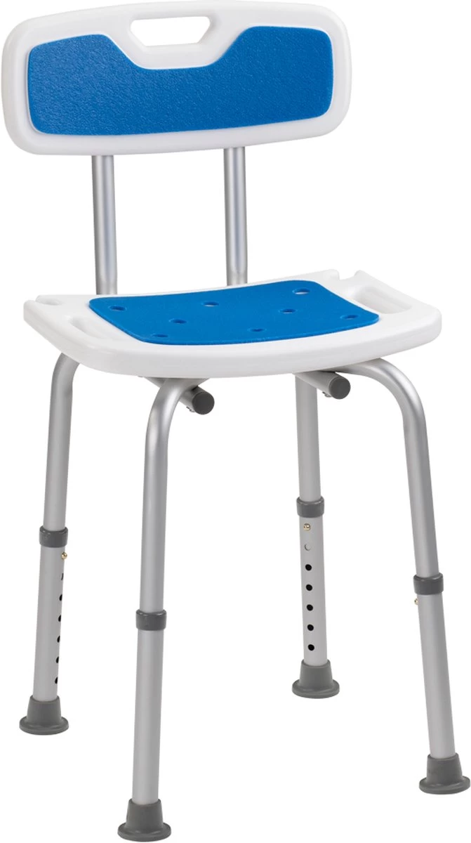 De zitting en rugleuning zijn voorzien van een comfortabele blauwe antislip bekleding wat ervoor zorgt dat u stabiel zit en niet van de zitting afglijdt. Ook zorgt de antislip bekleding er voor dat de douchestoel comfortabel zit.