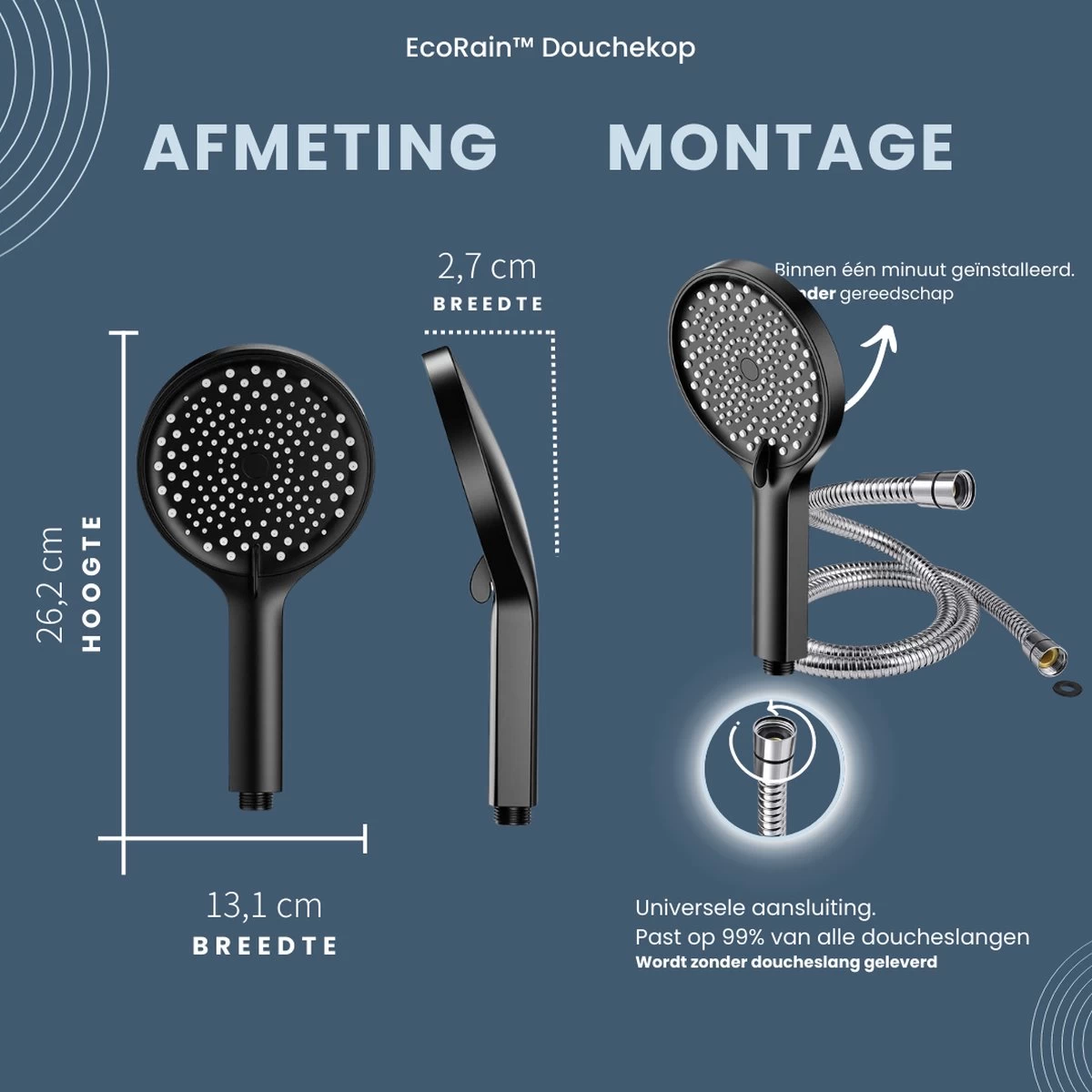 De EcoRainâ„¢ Douchekop is de beste in haar soort! Deze douchekop bespaart tot 50% water en behoudt een hoge waterdruk, iets waar onze experts enorm trots op zijn. Bij de douchekop is een unieke techniek toegepast. De slimme douchekop combineert zuurstof met water, dit is gezonder voor je lichaam en het bespaart onnodig water!