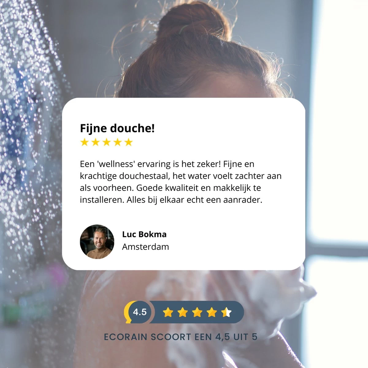 EcoRain maakt de perfecte douche-ervaring mogelijk! Het assortiment is ontworpen om je te voorzien van een luxe, verfrissende en ontspannende douche-ervaring. EcoRain laat zien dat een goede douche niet alleen een hygiënische noodzaak is, ook een moment van ontspanning en welzijn! EcoRain is betaalbaar, en komt komen met innovatieve functies, zoals waterbesparende douchekoppen. Geniet niet alleen van een wellness-ervaring onder de douche, maar bespaar ook op kosten zonder achteruit te gaan op kwaliteit. Haal hoge kwaliteit in huis en geniet van iedere douche-ervaring met EcoRain