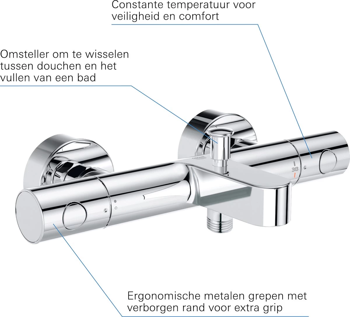 - GROHE TurboStat®: snel en constant de gewenste watertemperatuur