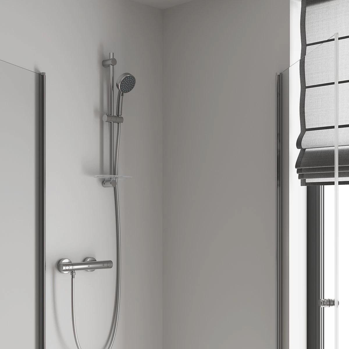 De GROHE Precision Get thermostatische douchemengkraan combineert stijl en comfort met optimale veiligheid. De douchekraan is voorzien van GROHE TurboStat technologie waardoor je nooit meer last hebt van ongewenste temperatuurschommelingen. Ook de watertoevoer en temperatuur blijven constant voor een luxe douchebeleving. Aan veiligheid is bij het ontwerpen van deze douchemengkraan eveneens gedacht! Via de GROHE SafeStop knop kun je de watertemperatuur eenvoudig instellen op maximaal 38°C zodat ook kinderen in alle veiligheid kunnen douchen.