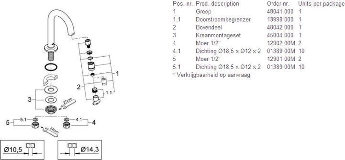 - Opbouwhoogte onderkant kraanmondstuk: 9,8 cm