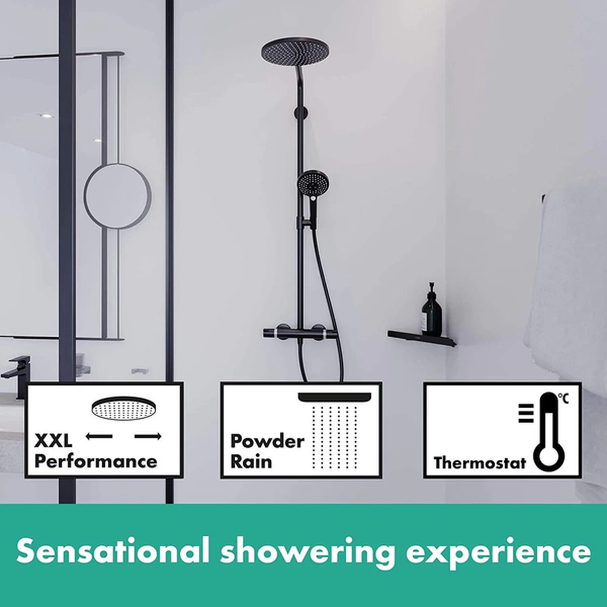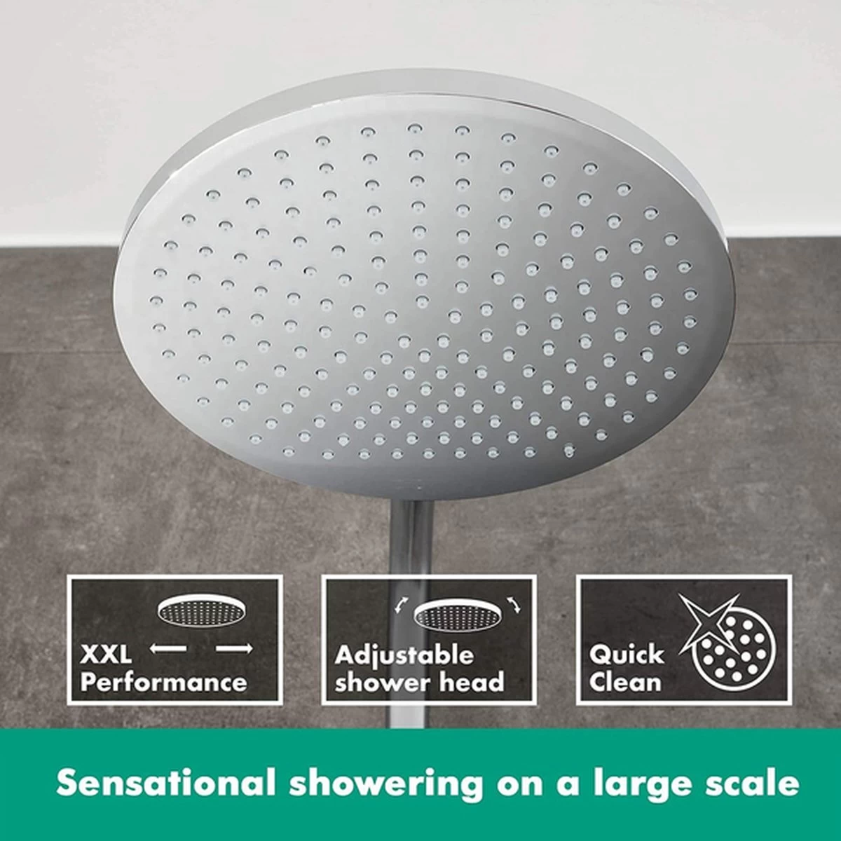 Het Crometta S 240 douchesysteem met 1 straalsoort en thermostaat is een totaalsysteem voor afwisselend doucheplezier. De thermostaat verhoogt het comfort door ervoor te zorgen dat de ingestelde temperatuur stabiel blijft. Bij veranderingen in de waterdruk reageert deze razendsnel en beschermt betrouwbaar tegen te heet of te koud water. De 240 hoofddouche met een diameter van 24 cm en de handdouche met een diameter van 10 cm hullen het lichaam in een verfrissende doucheregen (XXL Performance).
