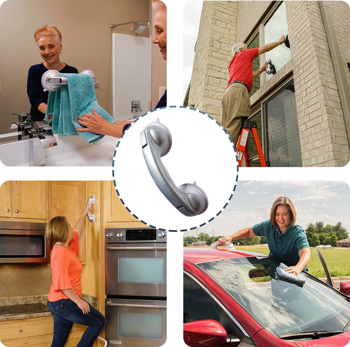 Deze handgreep met zuignap is gemakkelijk te verplaatsen en gemakkelijk te vervoeren en kan onder alle omstandigheden worden gebruikt, of het nu onder de douche is, op uw boot of om uw auto schoon te maken. Het helpt je wanneer je het nodig hebt!