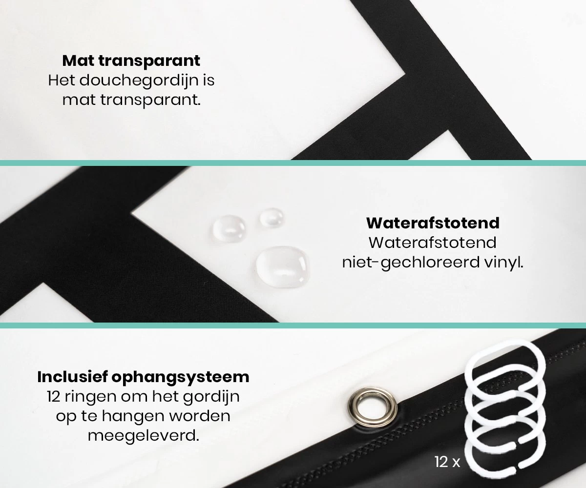 Het Loti Living douchegordijn is onmisbaar in elke badkamer. Het douchegordijn inclusief ringen is waterdicht en gemaakt van PEVA. Het douchegordijn wassen is eenvoudig met de hand te doen. Dit douchegordijn 180×200 cm is sneldrogend en anti schimmel. Het mooie en frisse ontwerp zorgt ervoor dat de badkamer er een stukje vrolijker uit ziet! Loti Living wenst u veel doucheplezier!