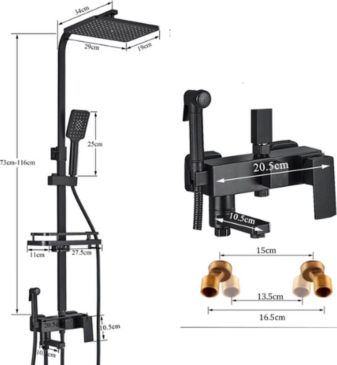 - Pakket Inhoud: 1 x Douche Kraan Set (inclusief Armatuur, Rechte Buis, Douche Holder, Slang, en Kraan Lichaam)