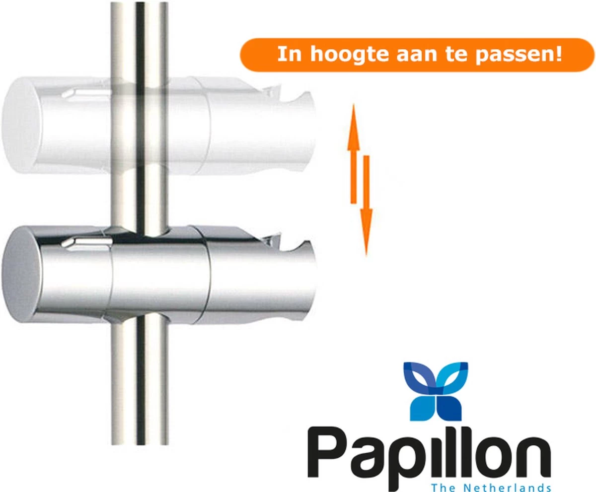 Eenvoudig aan te brengen op de glijstang: Opendraaien en op de stang klikken.