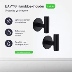 EAVY Handdoekhaakjes Zelfklevend – Set Van 2 Handdoek Haakjes – Wandhaak – Handdoekhouder