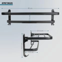 Vannons – Handdoekrek – Handdoekrek Badkamer – 2 Handdoeken – Handdoekrek Zelfklevend – Zwart