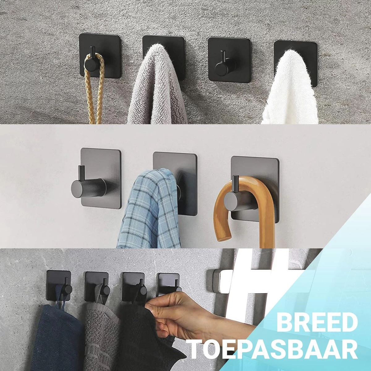 Doordat de handdoekhaakjes gemaakt zijn van hoogwaardig roestvrijstaal, zijn ze ook perfect te gebruiken voor vochtige ruimtes, zoals de badkamer. Het is dus geen probleem als de haakjes in aanraking komen met vocht of water. Daarnaast zijn de vierkante haakjes gemakkelijk te reinigen; met een droge doek laat je ze weer als nieuw blinken.