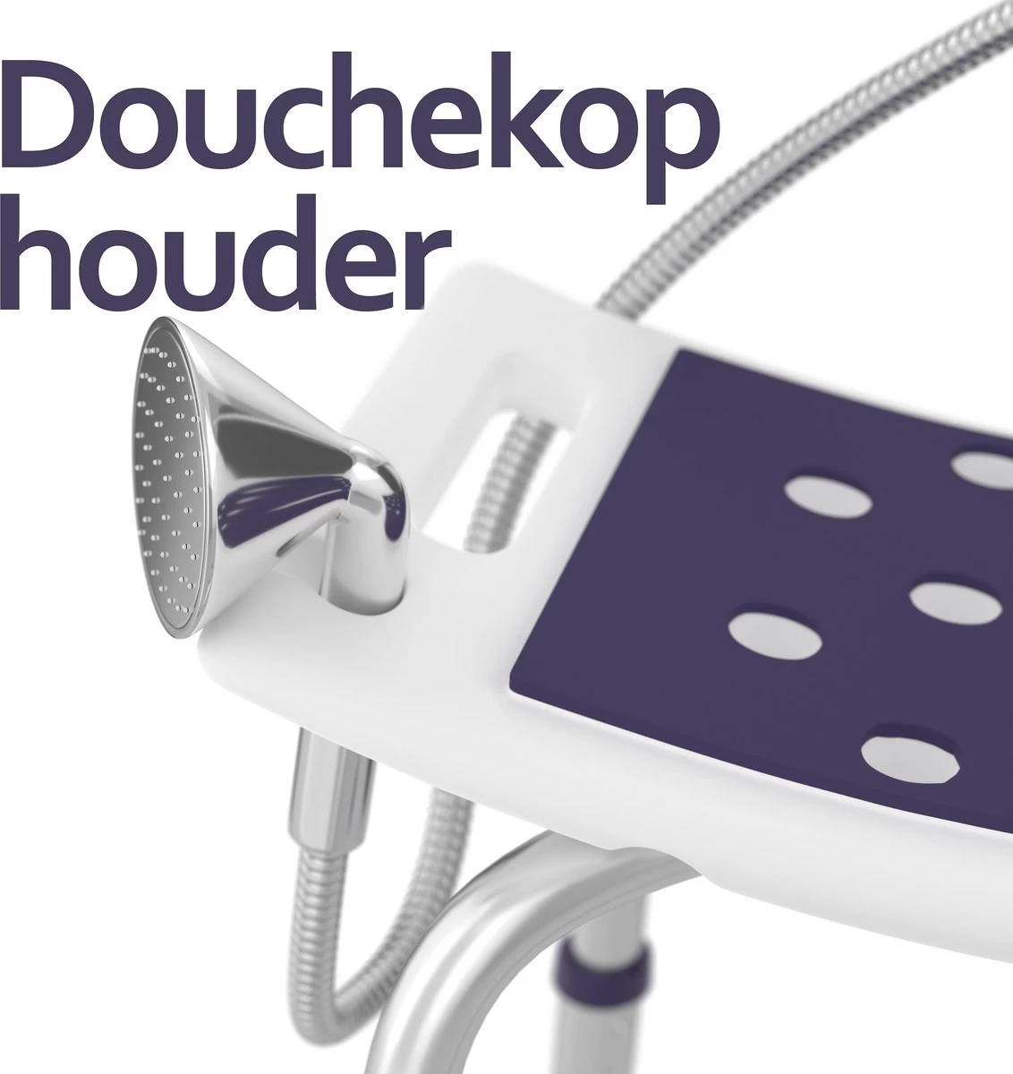 Hadden we al gezegd dat bij dit douchekrukje overal aan is gedacht? Met de speciale douchekophouder kun je de douchekop aan de zijkant van het zitvlak vastzetten. Daardoor hoef je je niet steeds uit te rekken om hem te pakken en terug te zetten. En als je tijdens het douchen je handen vrij wilt hebben om de zeep te pakken, zet je de douchekop gewoon even naast je neer. Wel zo makkelijk!