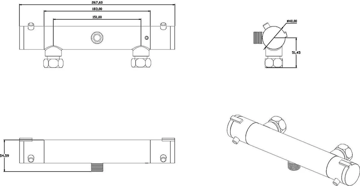 SCHÜTTE London Thermostatische Douchekraan – Hartafstand 150 Mm – Zwart Mat