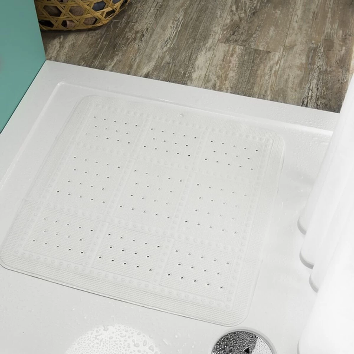 Met de Sealskin Unilux antislipmat zorg je voor extra veiligheid in jouw badkamer. Deze vierkante antislipmat is aan de onderzijde uitgerust met zuignappen zodat je deze stevig kunt bevestigen in je douche om uitglijden te voorkomen. Het water kan gemakkelijk weglopen door de gaatjes in de mat. De antislipmat is uitgevoerd in de kleur wit en dankzij zijn formaat van 55×55 cm is hij uitermate geschikt voor in je douchecabine. De mat kan eenvoudig met de hand gereinigd worden maar mag zelfs op een 30 graden fijnwasprogramma in je wasmachine.