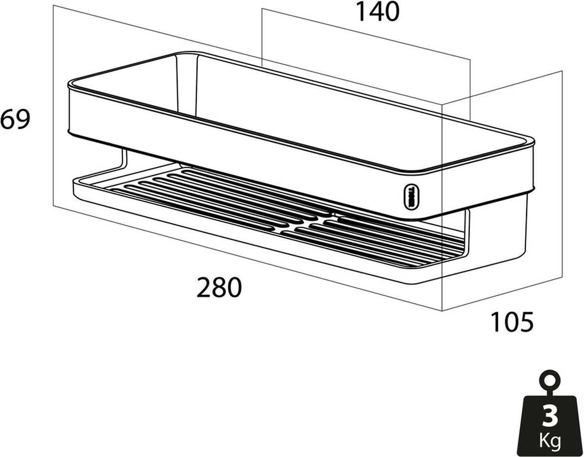 • Gebruiksgemak: dankzij de hoge rand en vlakke bodem blijven de doucheproducten stabiel in de mand staan