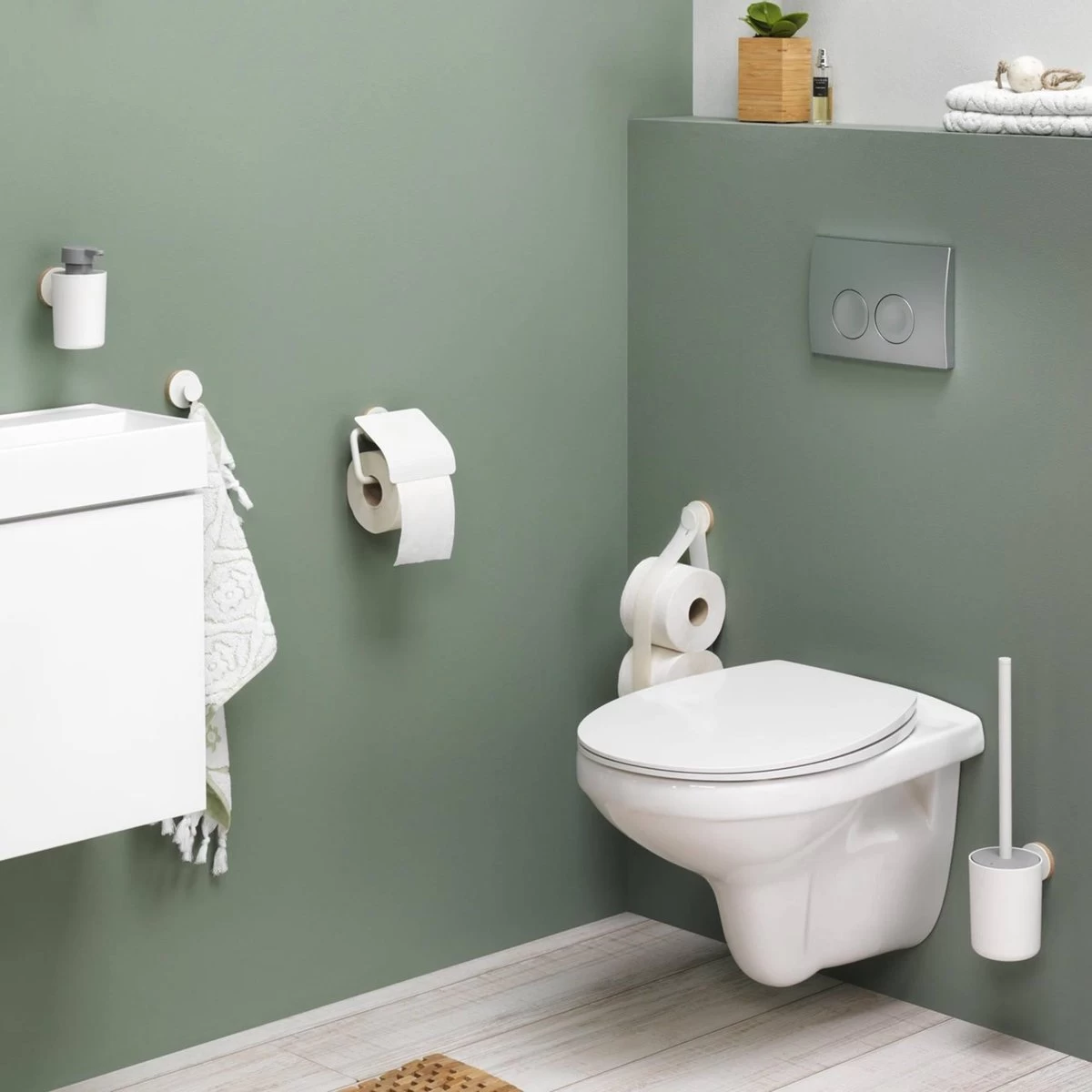 De toiletborstel met houder uit de Urban serie van Tiger is uitgevoerd in de kleur mat wit en grijs en wordt geleverd met twee decor ringen. De decor ringen, in de kleur licht eiken en grijs, maken het mogelijk een subtiel kleuraccent toe te voegen. Het is ook mogelijk het borstelgarnituur zonder de decor ring te monteren waardoor het zeer eenvoudig is om het product aan de gewenste stijl aan te passen. Bij de montage van het artikel wordt gebruik gemaakt van een muurplaatje waardoor de bijgeleverde bevestigingsmaterialen uit het zicht verdwijnen. Deze serie bevat tevens een groot aantal aanvullende accessores voor de badkamer en het toilet. Alle in dezelfde stijl. De toiletborstelhouder is tevens geschikt voor montage met TigerFix type 1, waarmee accessoires snel en eenvoudig op een gladde, harde ondergrond te bevestigen zijn door middel van een gepatenteerd lijmsysteem. Boren is niet noodzakelijk en de accessoires zijn eenvoudig te verwijderen zonder dat er resten op de ondergrond achterblijven. TigerFix is apart verkrijgbaar.
