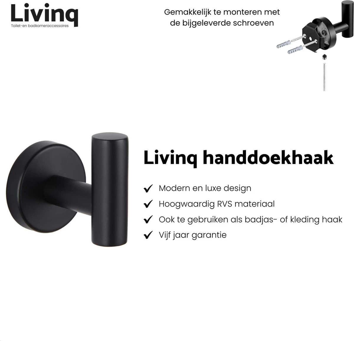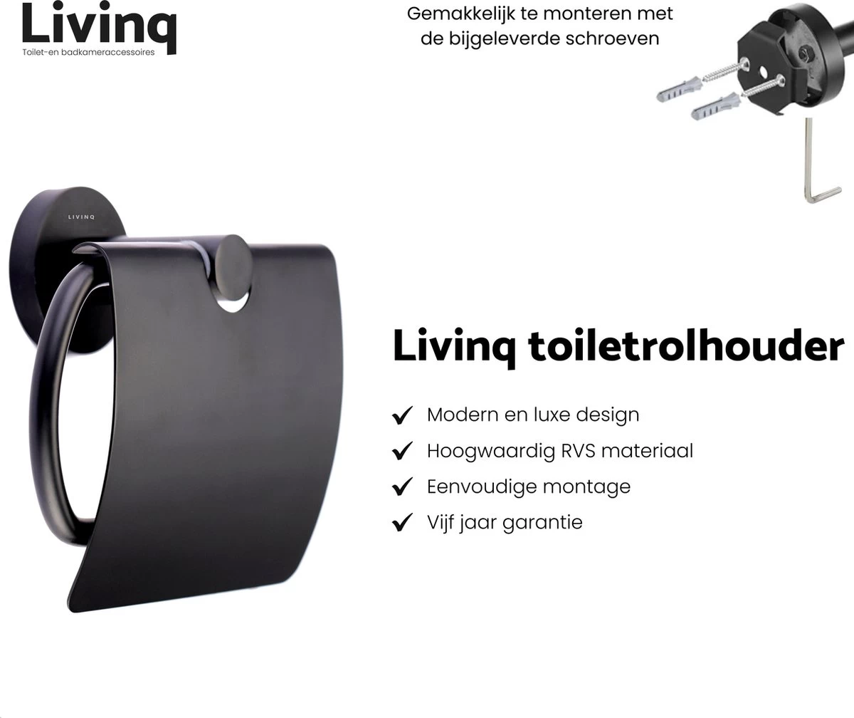Het LIVINQ toiletaccessoireset geeft uw toilet en/of badkamer een moderne uitstraling. Met het toevoegen van slechts enkele nieuwe LIVINQ accessoires geeft u uw toilet en/of badkamer een compleet nieuwe look. Deze accessoires zijn een must-have voor uw toilet en/of badkamer. Dat is onder meer te danken aan de moderne kleur (zwart) en het gebruikte materiaal (RVS). Deze toiletaccessoireset geeft uw toilet en/of badkamer net dat beetje extra uitstraling dat u zoekt. Alle accessoires zijn voorzien van een anti-kras, anti-roest en anti-plak laag en hebben 5 jaar garantie. Het LIVINQ toiletaccessoireset is volledig te monteren met schroefbevestiging. Een handleiding wordt meegeleverd.