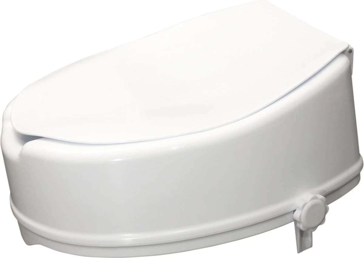 Toiletverhoger van 15 cm hoog, voorzien van een wc-bril / deksel. De toiletverhoger past op vrijwel alle toiletten.