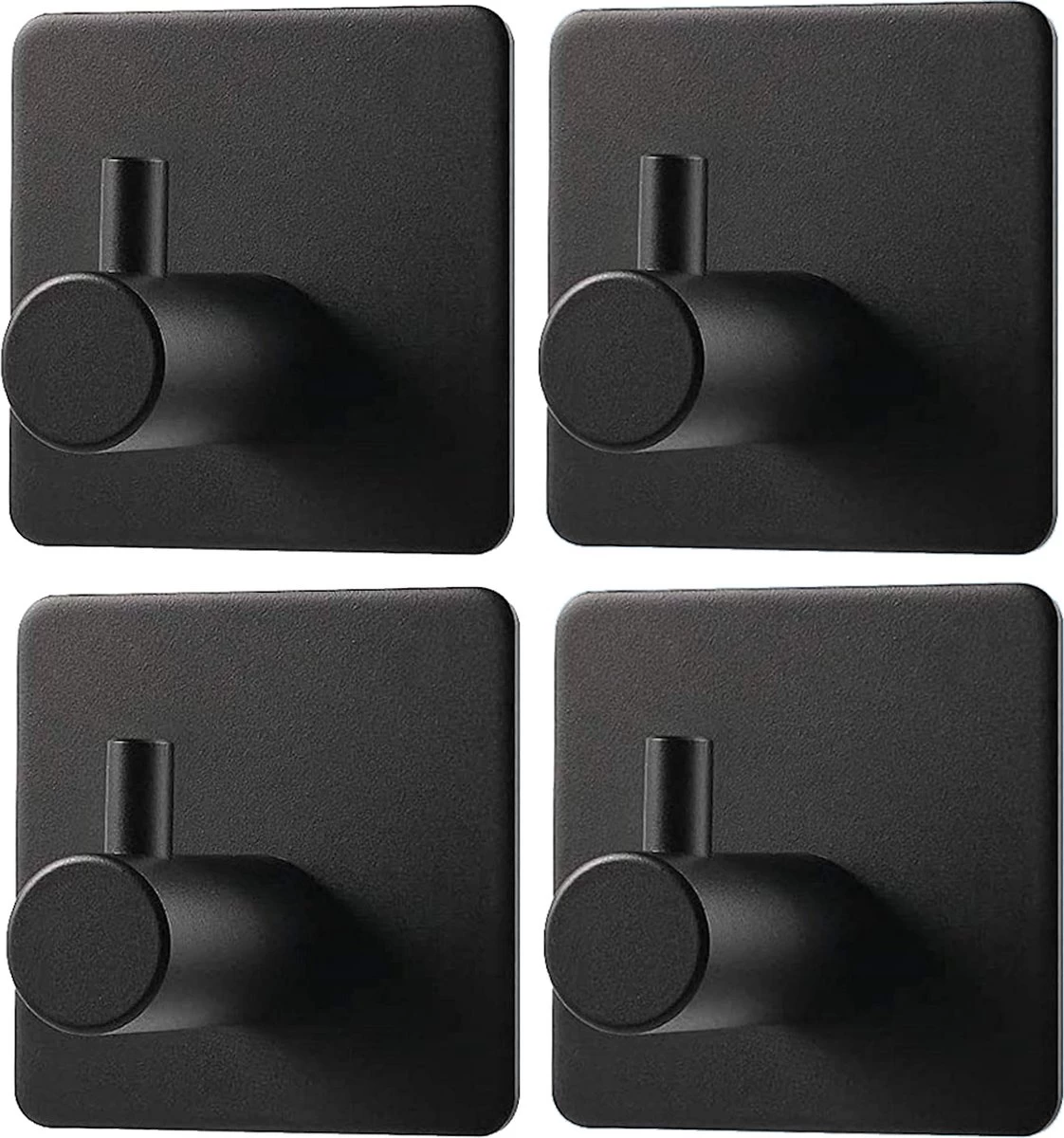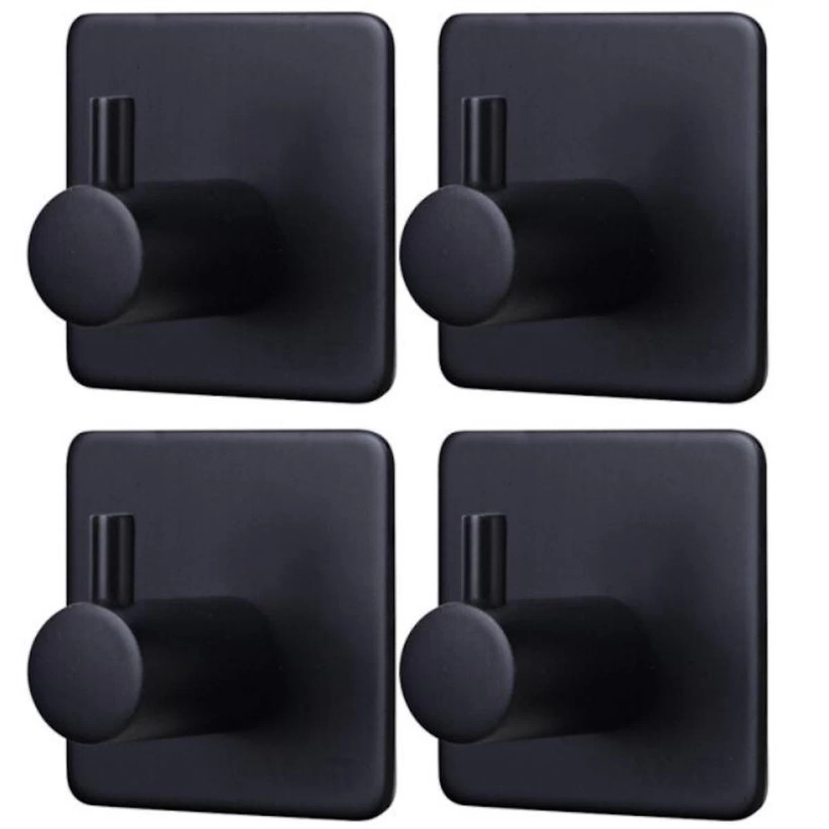 - 4 Vierkante Zelfklevende Handdoekhaakjes – Zwart