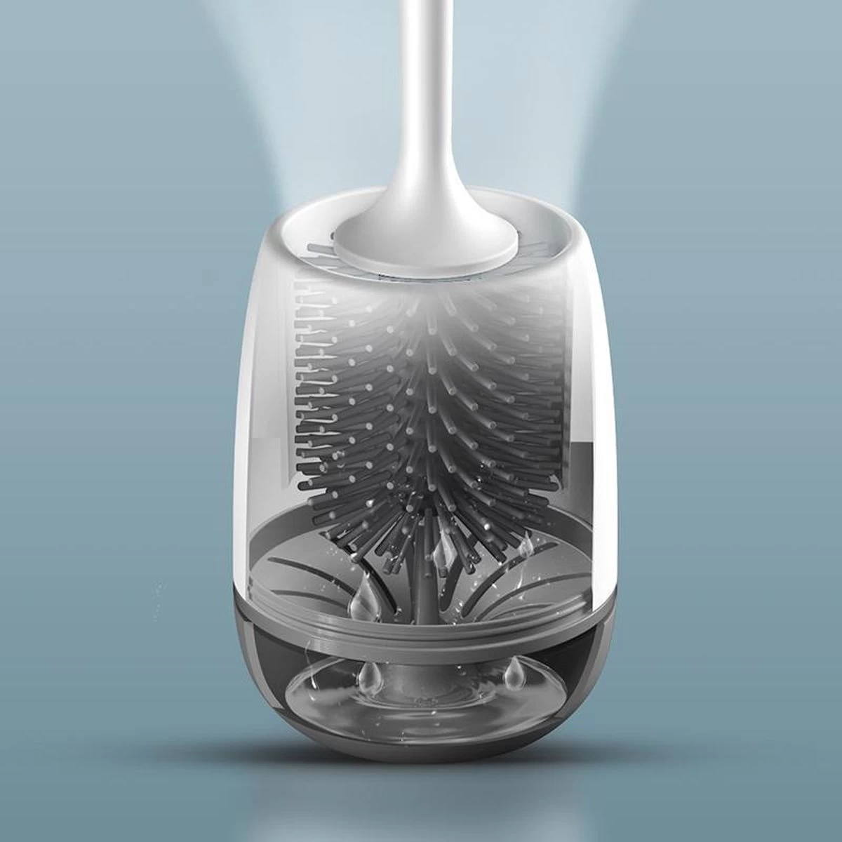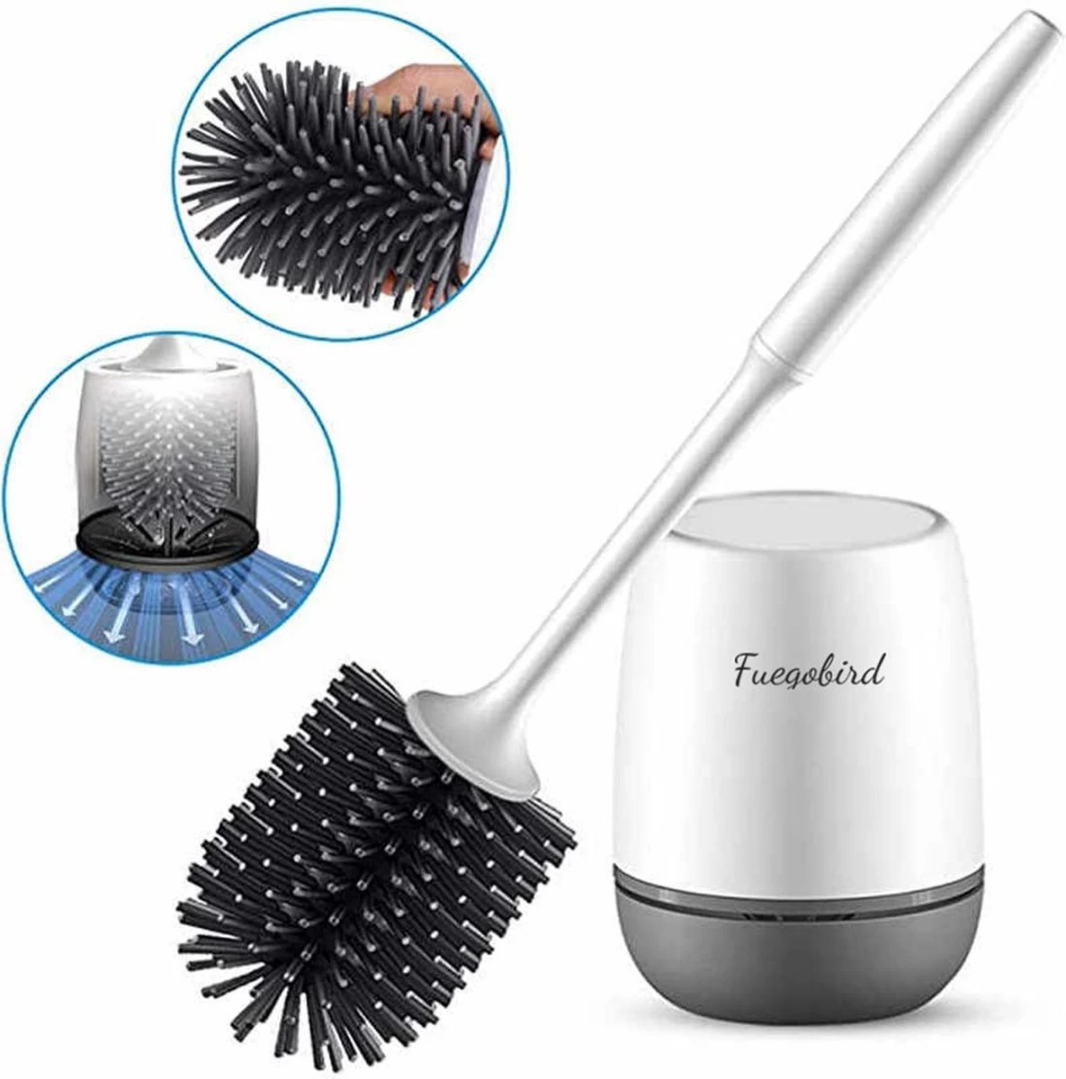 FUEGOBIRD Toiletborstel met lange steel en zachte haren WC-reinigingsborstelset Siliconen toiletborstel voor wandmontage zonder dode hoeken
