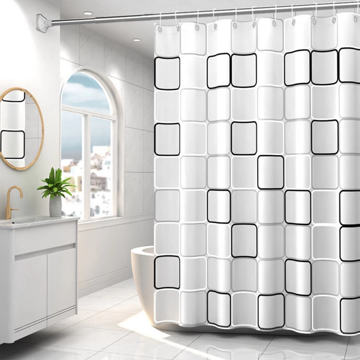 Met dit douchegordijn kan je niet misgrijpen. Het douchegordijn is voorzien van een modern en tijdloos blokjes patroon dat je badkamer laat stralen. Het gordijn laat niet door zich heen kijken en biedt daarmee volledige privacy tijdens het douchen.
