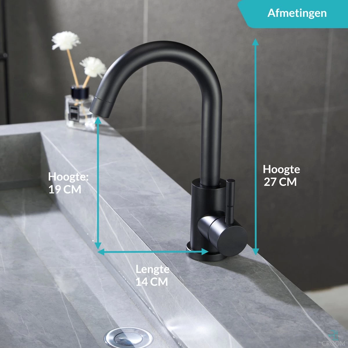 Deze matte zwarte uitvoering creëert een stijlvol, modern en minimalistisch effect wat jouw keuken of badkamer net dat beetje extra uitstraling brengt. Dit fraaie design met een moderne uitloop maakt de wasbak of wastafel daarnaast ruimer en meer open, waardoor de keuken of badkamer optisch groter lijkt.