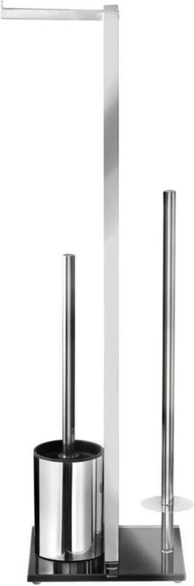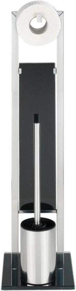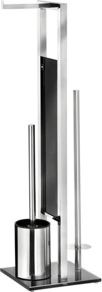 De hoogwaardige staande toiletbutler Rivalta is gemaakt van glanzend RVS gecombineerd met zwart, gehard glas.