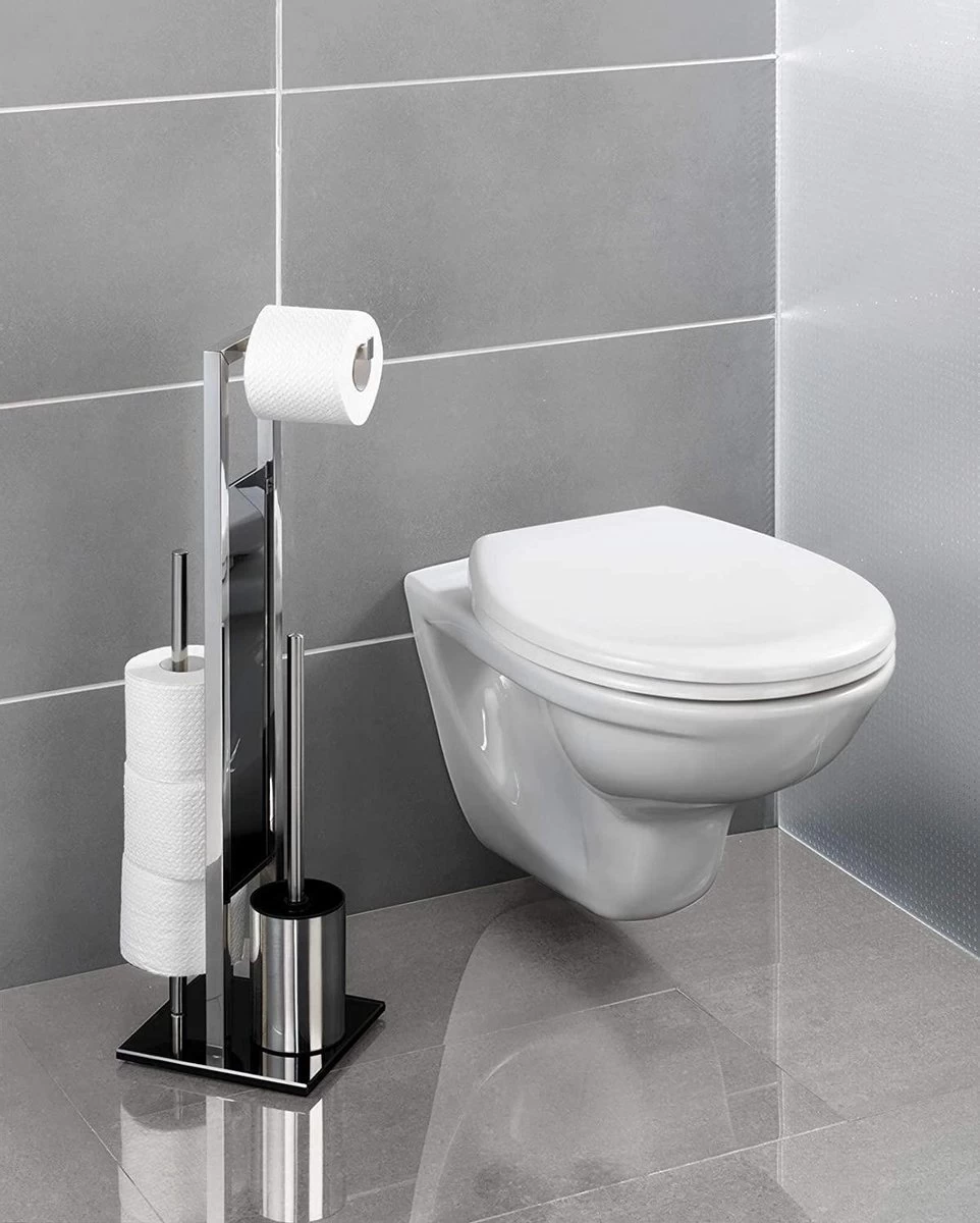 Deze toiletbutler in industrieel design maakt indruk met een glanzend oppervlak en zet decoratieve designaccenten in badkamer en toilet.