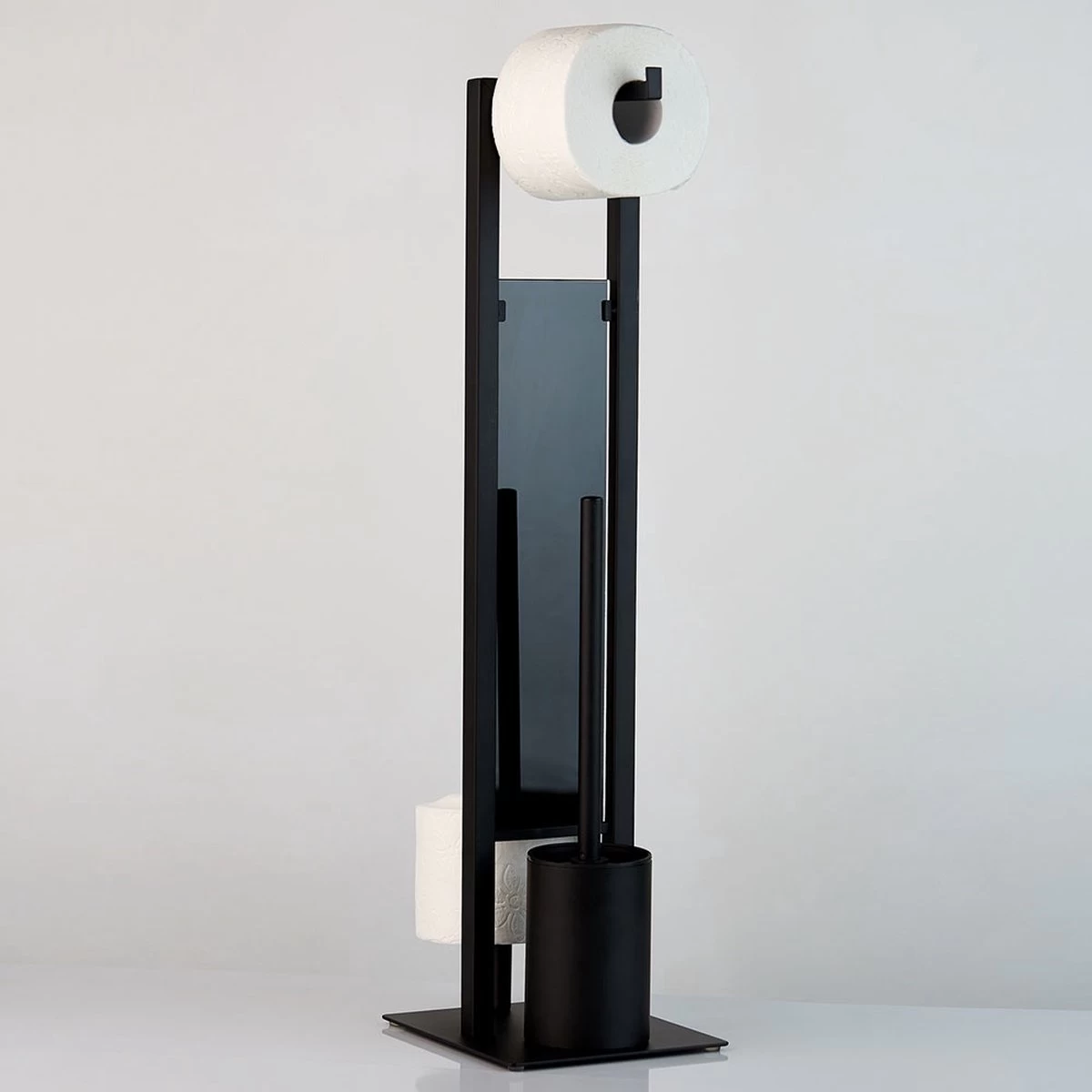 Deze toiletbutler in industrieel design maakt indruk met een diepzwart, mat oppervlak en zet decoratieve designaccenten in badkamer en toilet.