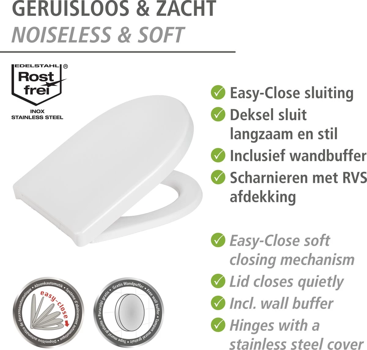 De toiletzitting sluit zacht en stil door de geïntegreerde easy-close sluiting.