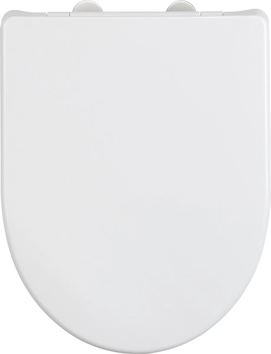 De witte toiletzitting Sindia uit stevig Duroplast is een WC bril met een D-vorm.