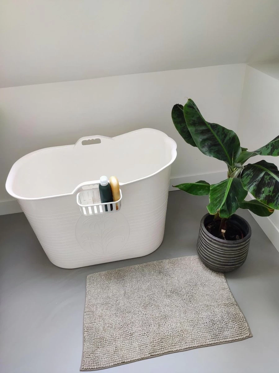 De Bath Bucket is ideaal voor de kleinere badkamer. Wanneer je hem even niet nodig hebt zet je hem gewoon aan de kant. De Bath Bucket heeft een capaciteit van zo’n 200 liter. Aan de zijkant vind je een handig bakje waar je je badproducten in kunt bewaren. Of waarom zet je er niet wat te drinken op? Boekje erbij en je kunt jezelf even heerlijk terugtrekken! Wanneer je klaar bent met baden hoef je het bad alleen nog even af te tappen met de bijgeleverde afvoerslang.